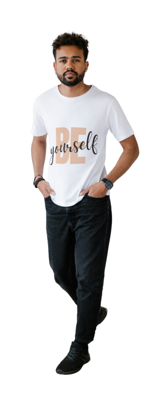 # Be Yourself White Cotton T-Shirt: Embrace Your Individuality Are you ready to make a statement without saying a word Introducing the "Be Yourself" White Cotton T-Shirt, designed exclusively for men who take pride in their unique personality and style. This T-shirt is not just a piece of clothing; it's a declaration of authenticity and confidence. Crafted from the finest quality cotton, this T-shirt promises unparalleled comfort and breathability. The soft fabric feels gentle against your skin, making it perfect for all-day wear. Whether you're heading out for a casual day with friends or lounging at home, this T-shirt will be your go-to choice. - Material: Premium Cotton - Color: Classic White - Neckline: Round Neck - Sleeves: Half Sleeves The "Be Yourself" T-shirt is a versatile addition to any wardrobe. Pair it with your favorite jeans for a relaxed look, or layer it under a jacket for a more polished vibe. Its minimalist design ensures it complements any outfit, allowing your personal style to shine through. In a world where conforming is often the norm, this T-shirt encourages you to stand out and be true to yourself. The bold "Be Yourself" print serves as a daily reminder to embrace who you are, no matter the situation. It's more than just fashion; it's a movement. Looking for a thoughtful gift for a friend or loved one The "Be Yourself" T-shirt is an ideal choice for birthdays, holidays, or just because. It's a gift that carries a meaningful message and is sure to be appreciated by anyone who values individuality. Embrace your uniqueness and make a bold statement with the "Be Yourself" White Cotton T-Shirt. Order yours today and step into a world where being YOU is the ultimate style! |