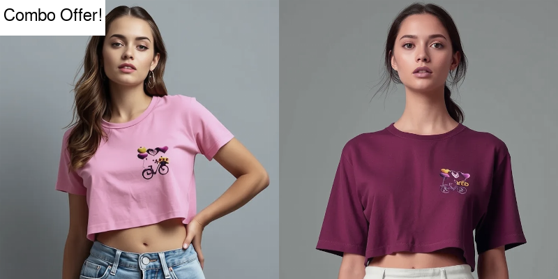 Add style and comfort to your casual collection with the Bicycle Pattern Crop Top Combo for Women. This pack includes 2 trendy crop tops in Pink and Wine colors, designed with a playful bicycle print that makes your outfit stand out. Crafted from soft, breathable fabric, these free-size crop tops ensure a comfortable fit for most body types, making them perfect for everyday wear. Key Features: Upgrade your wardrobe with this Bicycle Pattern Crop Top Combo – a trendy, comfortable, and versatile choice for modern women. |