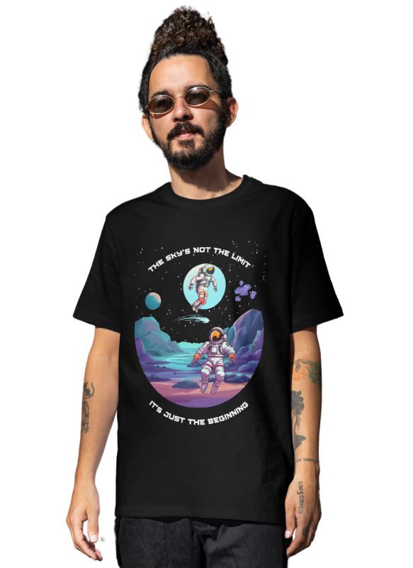 Step up your fashion game with the "Sky's Not the Limit" black half sleeves cotton t-shirt for men. Designed for those who believe in reaching beyond the stars, this t-shirt is more than just attire—it's a statement. Whether you're out on a casual day or aiming to impress, this t-shirt has got you covered. - Premium Cotton Fabric: Made from the finest cotton, it ensures a soft touch against your skin, offering both comfort and durability. No more compromising between style and coziness! - Bold Statement Design: The eye-catching slogan "Sky's Not the Limit" is not just a phrase but a mantra for the ambitious. Wear it as a reminder that the only limits are the ones you set. - Versatile Style: Perfectly pairs with jeans, shorts, or even a casual blazer. Its classic black hue ensures you can mix and match with ease, making it a staple in your wardrobe. Whether you're headed to a casual brunch, a night out with friends, or simply lounging at home, this t-shirt adapts to every setting. Its breathable fabric keeps you cool, making it ideal for both summer days and layering in cooler weather. In today's world, being fashion-forward also means being environmentally conscious. Crafted with sustainability in mind, this t-shirt not only looks good but also respects the planet. By choosing this product, you're making a choice for a greener, better tomorrow. Don't just wear a t-shirt; wear a vision. Join countless others who are setting new horizons and defying boundaries. With "Sky's Not the Limit," you're not just buying a piece of clothing—you're becoming part of a community that believes in endless possibilities. Embrace the limitless possibilities and express your unique style today. After all, why should the sky be the limit when there are footprints on the moon |
