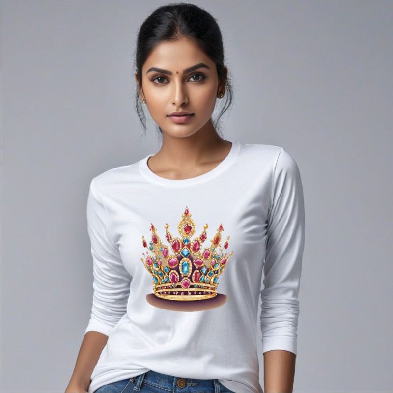 This stylish white women's t-shirt features a striking print of a queen crown, symbolizing strength, confidence, and empowerment. Made from soft, breathable fabric, it offers a comfortable fit that's perfect for everyday wear. The crown design adds a touch of elegance and a reminder to embrace your inner royalty. Pair it with jeans or a skirt for a chic look that speaks volumes about your unique style and attitude. Ideal for casual outings, brunches, or just lounging in style, this tee is a must-have for every queen's wardrobe! |