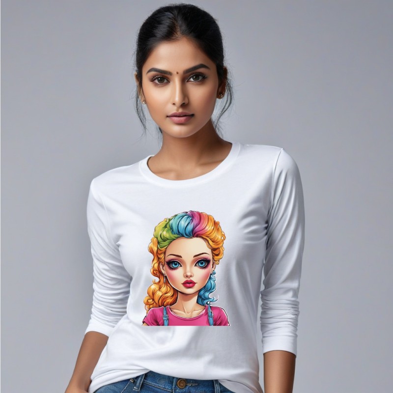 Product Description: Embrace playful charm with the Doll Delight Women T-Shirt! Made from soft, breathable cotton, this T-shirt ensures comfort and durability for any casual occasion. The adorable doll print adds a whimsical touch, making it perfect for movie nights with friends or as a delightful gift for someone special. With its classic round neck design, this tee is versatile enough to pair with jeans or shorts for an effortless look. Material: High-quality 250 GSM cotton for a soft and cozy feel Design: Round neck featuring a cute and colorful doll print Occasion: Ideal for gifting, casual outings, or cozy nights in Fit: Regular fit for ultimate comfort Care Instructions: Machine washable for hassle-free cleaning Doll Delight – Bring a touch of fun to your wardrobe! |