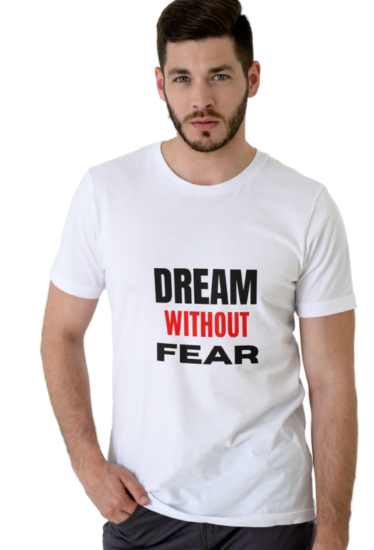 Fearless dreamer white cotton t-shirt round neck with half sleeve for mens