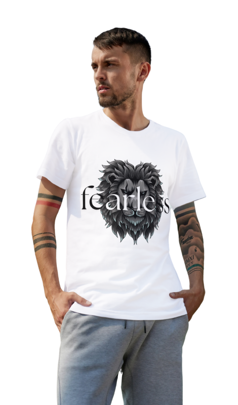 Step into every day with confidence in our Fearless White Cotton T-Shirt — a bold expression of strength and attitude. Crafted from 100% pure cotton, this t-shirt combines comfortable with a powerful message. The minimal white backdrop makes the "Fearless" design pop, reminding you (and everyone else) to face challenges head-on. Whether you're chasing goals or breaking limits, wear your mindset with pride.