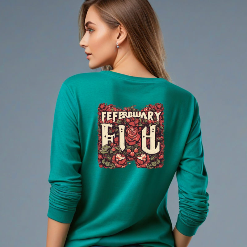 Premium 250 GSM Cotton Tee – February Design, Full Sleeves for Women