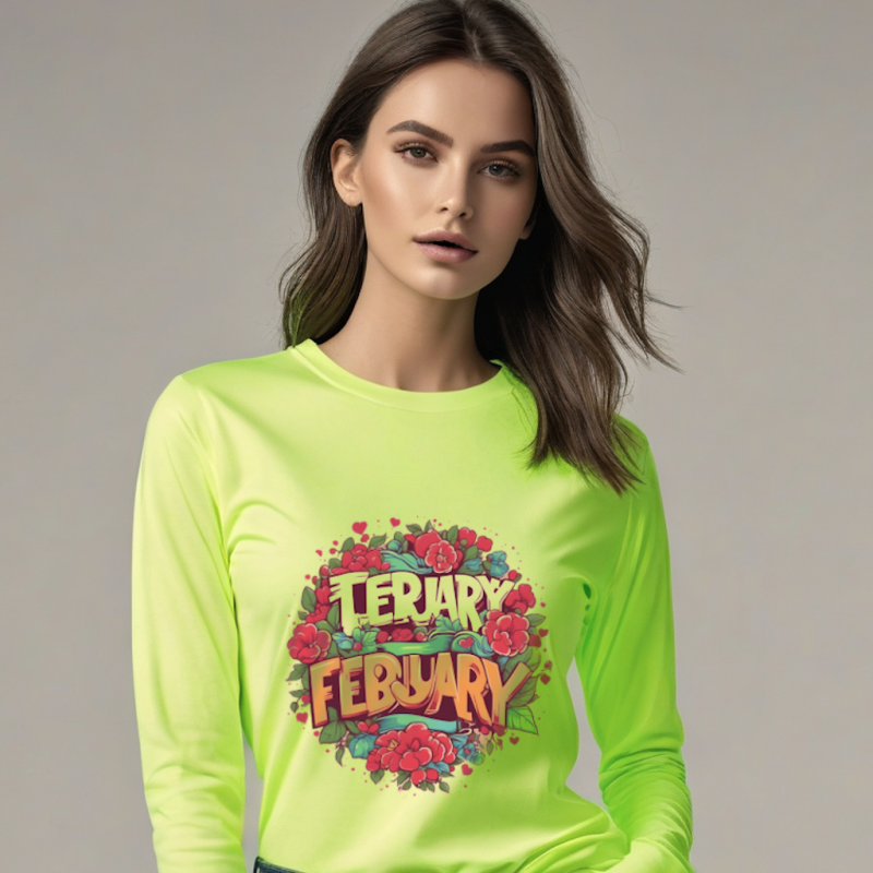 Casual February Graphic T-Shirt – Women’s Neon Green Full Sleeves