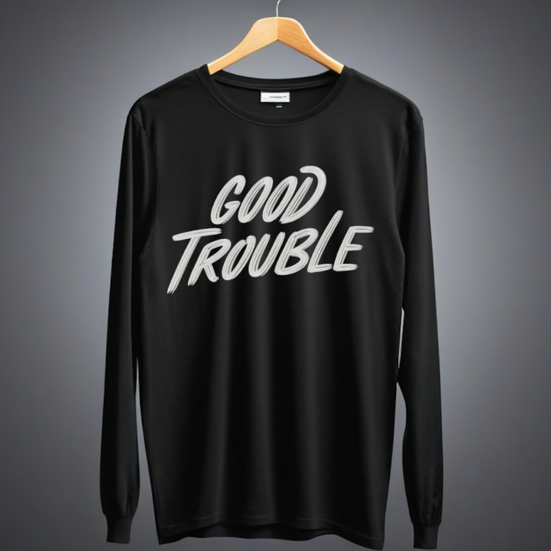 # Black Cotton Tee for Women – Good Trouble Message, Full Sleeves Introducing our *Black Cotton Tee for Women* emblazoned with the empowering message "Good Trouble." This isn't just a T-shirt; it's a statement, a call to action, and a testament to the power of making a difference. Perfectly crafted for those who want to blend fashion with advocacy, this tee encourages you to embrace the spirit of change while looking effortlessly chic. Crafted from 100% premium cotton, this T-shirt offers unparalleled comfort, allowing you to feel at ease whether you're at a casual outing or a spirited protest. The full sleeves provide an extra layer of warmth, making it a versatile addition to your wardrobe for every season. Its sleek black hue is not only timeless but also a perfect backdrop for the bold white message that stands out, inspiring everyone around you. Why blend in when you can stand out The "Good Trouble" message is more than just words; it's an attitude, a lifestyle, and a reminder that meaningful change often requires stepping out of the comfort zone. Perfect for pairing with your favorite jeans, skirts, or even layered under a jacket, this tee is as versatile as it is inspiring. Whether you're headed to a rally, a coffee date, or a casual day at work, this shirt ensures you're always dressed for the occasion. > "Never, ever be afraid to make some noise and get in good trouble, necessary trouble." - John Lewis Wearing this T-shirt is not just about fashion; it's about joining a community of like-minded individuals who believe in the power of their voices. It's about standing up, stepping out, and speaking out. When you wear this tee, you're not just wearing a piece of clothing; you're wearing a piece of history, a piece of the future, and a symbol of hope. Add this *Black Cotton Tee* to your collection today and wear your beliefs proudly. Because when it comes to making a difference, every small step counts. Get ready to make your mark and inspire others to do the same. Whether you're a seasoned activist or someone just beginning their journey, this T-shirt is your perfect companion. It's time to embrace the spirit of *Good Trouble* and let your clothing do the talking. |