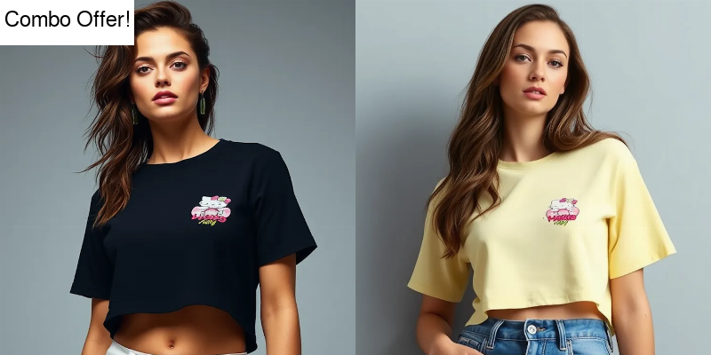 Add a playful and trendy touch to your wardrobe with the Hello Kitty Crop Top Combo for Women. This pack includes 2 stylish crop tops in Black and Light Yellow, featuring a cute Hello Kitty print that brings a fun and youthful vibe to your look. Made with soft, breathable fabric, these free-size tops ensure all-day comfort and a relaxed fit for most body types. Key Features: Upgrade your fashion game with this Hello Kitty Crop Top Combo – stylish, comfortable, and perfect for casual everyday wear. |