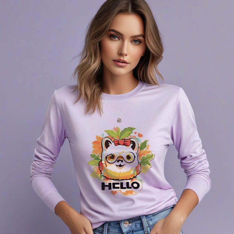 Cool Hello Design – Women’s Full Sleeve T-Shirt in Lavender Cotton