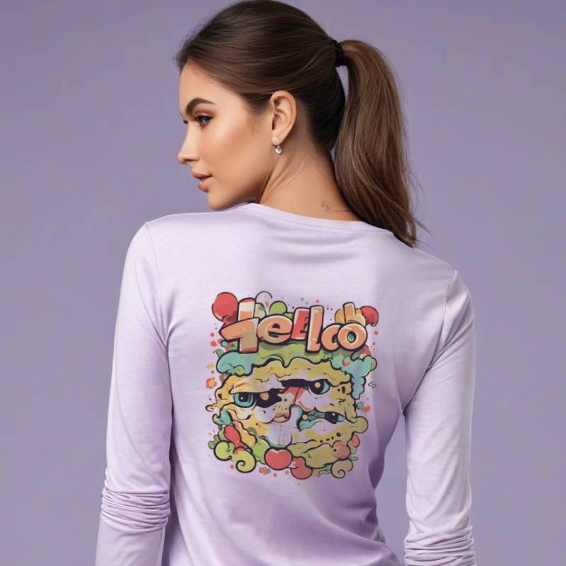 Cool Hello Design – Women’s Full Sleeve T-Shirt in Lavender Cotton
