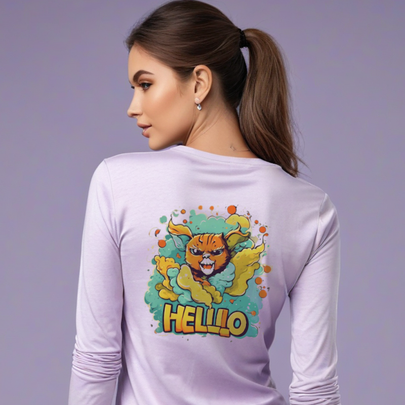 Cool Hello Design – Women’s Full Sleeve T-Shirt in Lavender Cotton