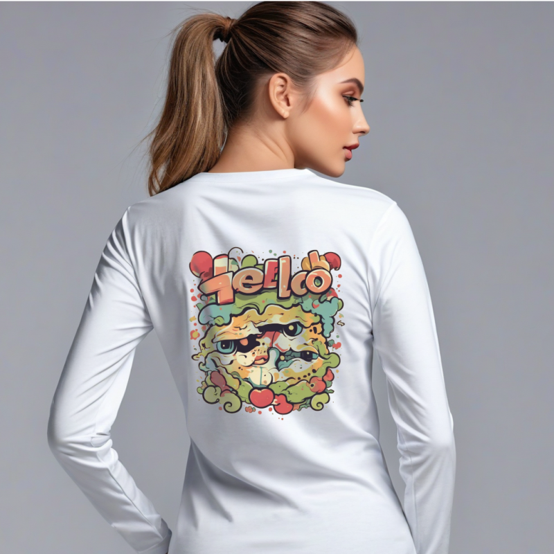 White 250 GSM Cotton T-Shirt – Women’s Full Sleeves, Hello Print