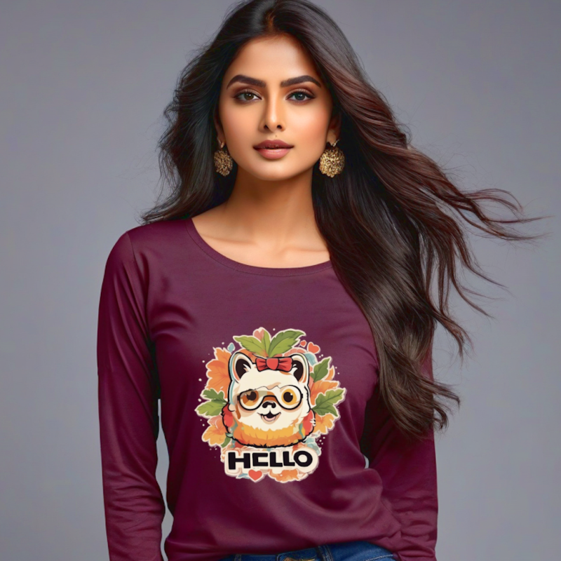 Gifting Choice – Women’s Hello Red Wine T-Shirt with Full Sleeves