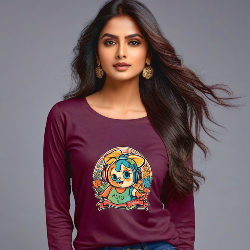 Gifting Choice – Women’s Hello Red Wine T-Shirt with Full Sleeves