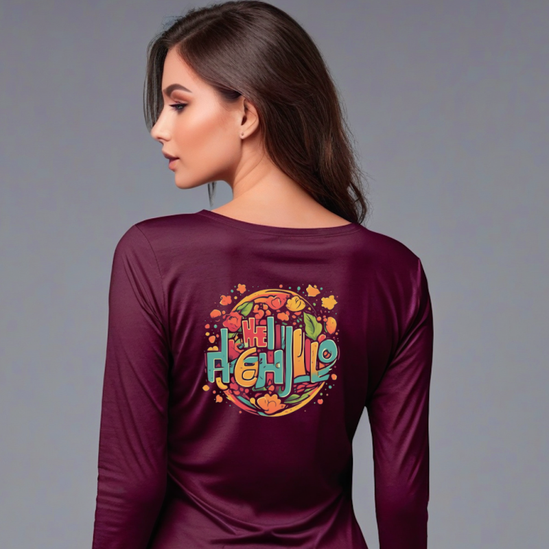 Gifting Choice – Women’s Hello Red Wine T-Shirt with Full Sleeves