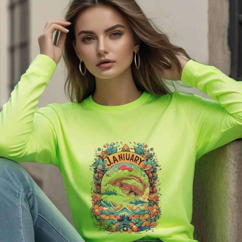 # Women’s January Edition Tee – Neon Green Cotton, Long Sleeves Introducing the Women’s January Edition Tee in a vibrant neon green that promises to make you stand out in any crowd! Crafted with 100% premium cotton, this long-sleeved tee not only ensures comfort but also offers a stylish edge to your everyday wardrobe. Whether you're heading to a casual brunch or a spontaneous road trip, this tee is your perfect companion. - Vibrant Neon Green: The striking neon green color is designed to turn heads and energize your look. Perfect for those who love to infuse a pop of color into their outfits. - Premium Cotton Comfort: Made from high-quality cotton, this tee is breathable, soft, and gentle on the skin, ensuring you feel comfortable all day long. - Versatile Long Sleeves: Ideal for layering or standalone wear, the long sleeves offer versatility, keeping you cozy during the cooler months while being lightweight enough for a sunny day. - Casual Chic: Pair it with your favorite jeans and sneakers for an effortlessly cool, everyday look. - Layer with Flair: Throw on a denim jacket or a cozy cardigan to add depth and warmth to your outfit. - Accessorize Boldly: Complement the neon hue with bold accessories, like chunky bracelets or a statement necklace, to elevate your style game. Not only is this tee designed to make you look good, but it also makes you feel good about your choices. Our commitment to sustainability ensures that this product is crafted with environmentally friendly processes, minimizing our carbon footprint. Elevate your wardrobe with the Women’s January Edition Tee. Perfect for any occasion, this neon green sensation is ready to add a spark of joy to your outfit. Order now and embrace the blend of comfort, style, and sustainability! Don't miss out on adding this vibrant piece to your collection. Limited stock available! |