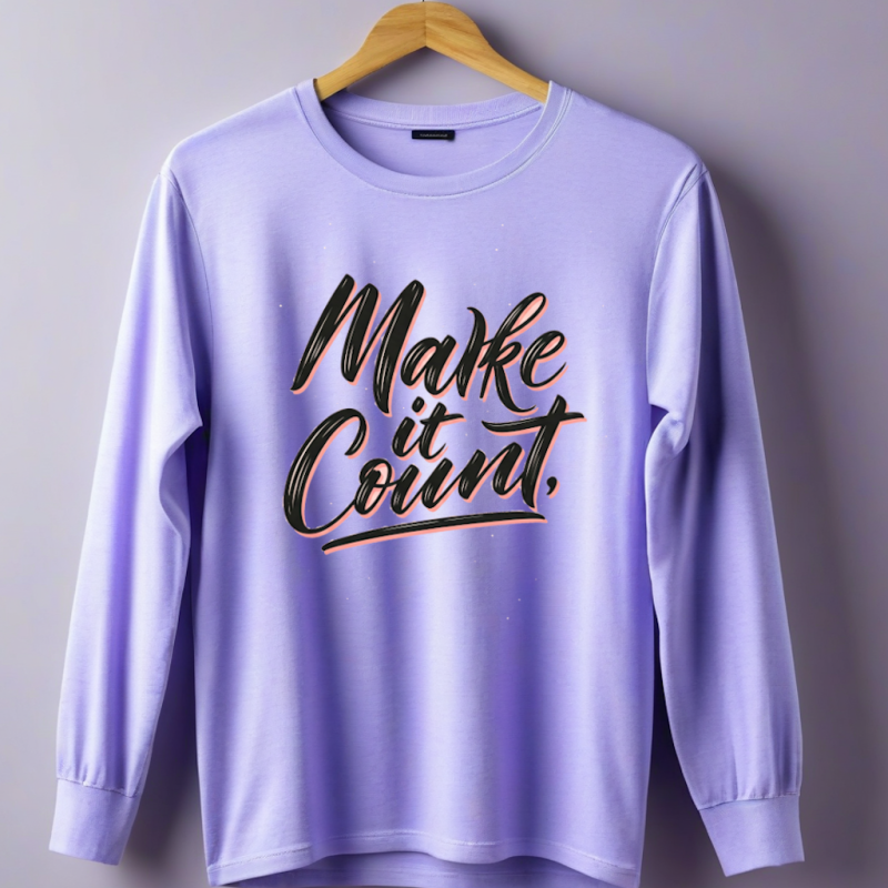 # Confident in Cotton – Women’s Lavender Full Sleeve Make It Count Tee Step into a world of comfort and style with our Confident in Cotton – Women’s Lavender Full Sleeve Make It Count Tee. Elevate your wardrobe essentials with this delightful piece that blends the soft embrace of cotton with an empowering message. Crafted from high-quality cotton, this tee ensures that you stay comfortable throughout the day, whether you're out on an adventure or enjoying a cozy day at home. The breathable fabric embraces your skin with a gentle touch, making it perfect for any season. - Soft Lavender Hue: This tee comes in a soothing lavender shade that complements every skin tone, adding a touch of elegance to your everyday outfit. - Full Sleeve Design: The long sleeves provide both style and warmth, making it a versatile choice for layering or wearing on its own. - Empowering Message: "Make It Count" is more than just a phrase – it's a mantra. Wear it with pride and let your clothes speak for you. Whether paired with your favorite jeans for a casual look or dressed up with a skirt for a night out, this tee is your go-to for a myriad of fashion possibilities. Mix and match with accessories to make your ensemble truly yours. > *"Clothes mean nothing until someone lives in them."* – This tee becomes a part of your story, a canvas for your expression. We believe in fashion with a conscience. Our Confident in Cotton Tee is made from sustainably sourced materials, ensuring that you not only look good but feel good about your choices. Ready to add a staple piece to your wardrobe The Confident in Cotton – Women’s Lavender Full Sleeve Make It Count Tee awaits. Embrace the blend of comfort, style, and empowerment. Make every moment count with a tee that truly defines you. Order now and step into a world where fashion meets purpose. Discover the essence of confidence in every thread. Your journey of self-expression begins with us. |