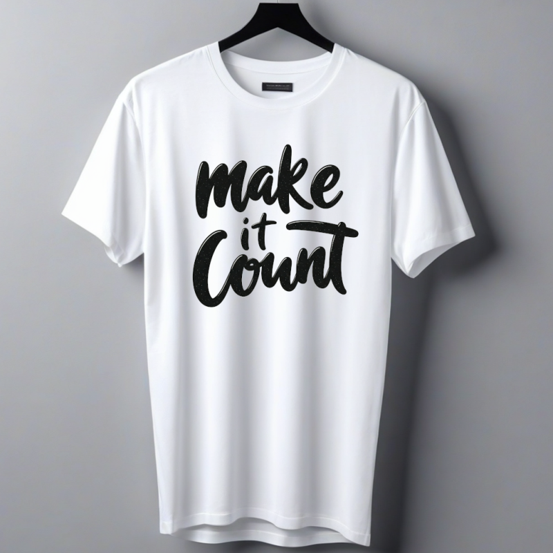 Introducing the Men’s Motivational T-Shirt – Make It Count, designed for those who believe in making the most out of every moment. Crafted from premium white cotton, this half-sleeved tee is not just a piece of clothing; it’s a statement of intent. Whether you’re hitting the gym, heading out for a casual day, or lounging at home, let this t-shirt remind you to seize each day with enthusiasm and vigor. - Premium Quality Fabric: Made from pure cotton, this t-shirt offers unmatched comfort and breathability. Perfect for all-day wear, keeping you cool and relaxed. - Inspirational Design: The bold "Make It Count" print serves as a daily reminder to focus on what truly matters. It’s not just a t-shirt; it’s motivation you can wear. - Versatile Style: Its classic white color and half-sleeve design make it easy to pair with any outfit. Dress it up with a jacket or keep it casual with jeans. This tee is your go-to option for any occasion. |