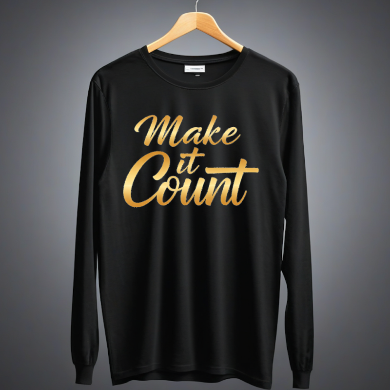 Introducing the Women’s Black Cotton T-Shirt with a bold "Make It Count" print, designed for those who believe in making the most of every moment. This chic and versatile piece is a must-have addition to your wardrobe, offering not just style but comfort to match. Crafted from high-quality cotton with a substantial 250 GSM (grams per square meter) fabric, this T-shirt ensures durability and a luxurious feel. The fabric is not only breathable but also soft to the touch, making it perfect for all-day wear. Whether you're running errands or enjoying a casual day out, this T-shirt offers unparalleled comfort. With its sleek black color and full sleeves, this T-shirt is designed to flatter every body type. The eye-catching "Make It Count" print adds a touch of personality and inspiration to your everyday look. Pair it with jeans for a relaxed vibe, or dress it up with a skirt and accessories for a night out. The possibilities are endless! > "Make It Count" - A reminder to seize the day and live life to the fullest! Taking care of your new favorite T-shirt is a breeze. Simply machine wash cold with like colors and tumble dry low. This ensures that your shirt retains its shape and vibrant print even after multiple washes. - High-Quality Fabric: Enjoy the comfort and luxury of premium cotton. - Versatile Style: Perfect for any occasion, from casual to semi-formal. - Inspiring Message: Wear your motivation and make every moment count. - Easy Care: Designed for hassle-free maintenance. Elevate your everyday style with the Women’s Black Cotton T-Shirt – Make It Count Print. It's more than just a T-shirt; it's a lifestyle! Order yours today and embrace the perfect blend of comfort, quality, and motivation. |