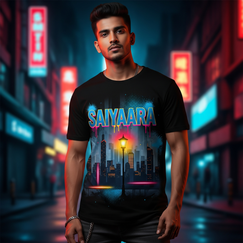 Step into the world of Bollywood romance with this Saiyaara-themed black T-shirt for men, featuring a beautiful night scene print that captures the drama and emotion of the movie. Crafted from 100% premium cotton with a sturdy 250 GSM fabric, this tee combines style, comfort, and durability in one.