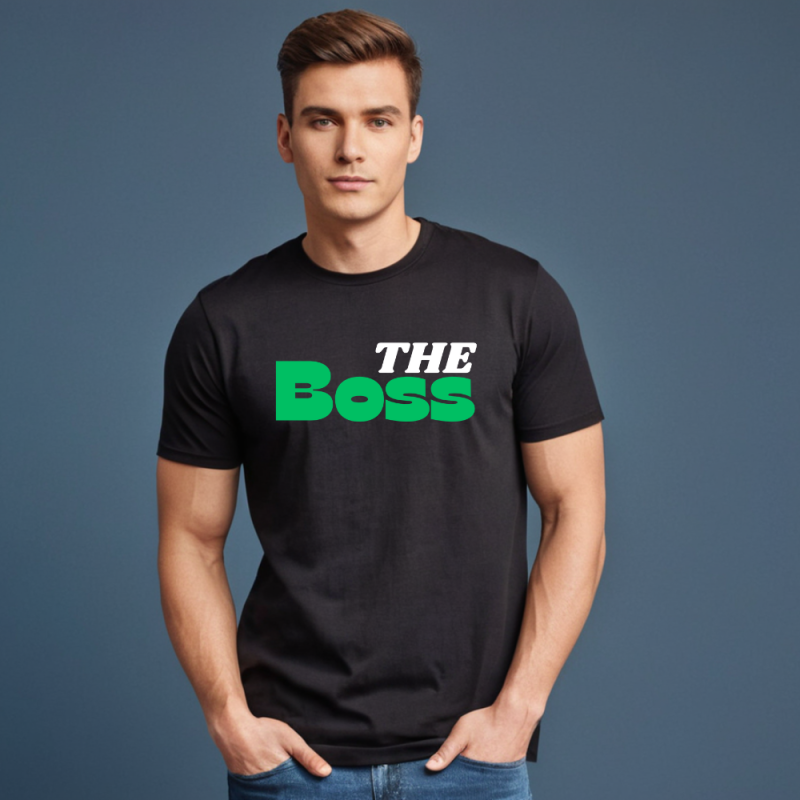 Stylish “The Boss” TShirt for Men, Black, 100% Cotton, 250 GSM, Round Neck