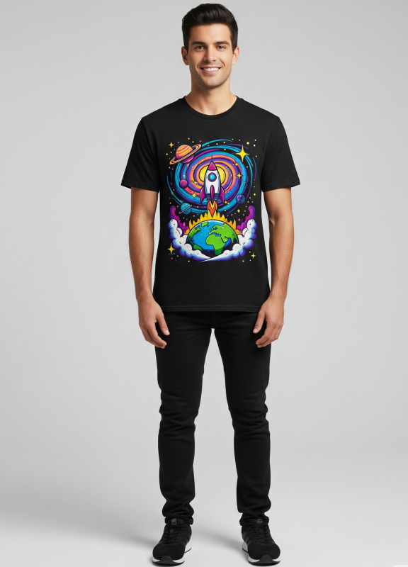 Product Description: Get ready to travel beyond the ordinary with the “Into the Cosmos” T-Shirt – a bold expression of your fascination with the universe. Designed with a detailed space theme graphic featuring stars, planets, and galaxies, this tee transforms your everyday look into something out of this world. Made from 100% cotton with a thick 250 GSM fabric, it offers unbeatable comfort and durability. The deep black color makes the cosmic artwork pop, making it a go-to choice for space lovers, stargazers, and sci-fi fans. Product Highlights: • Cosmic-Themed Print – stars, galaxies, and celestial vibes in full detail • Jet Black Color – bold, versatile, and a perfect backdrop for the design • 250 GSM Premium Cotton – heavyweight, soft, and breathable • Round Neck & Half Sleeves – everyday fit with a cosmic twist • Ideal for casual wear, gifting, or themed events • Perfect for dreamers, science buffs, and those who think beyond Earth |
