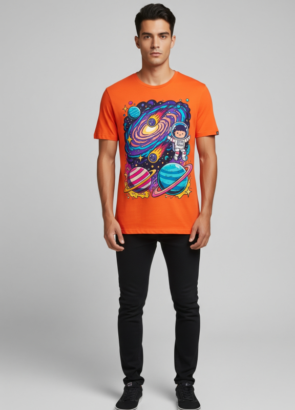 Product Description: Step into cosmic cuteness with our “Little Space Explorer” T-Shirt, featuring a charming baby astronaut cartoon surrounded by playful space elements. The vibrant orange color brings energetic vibes, while the 250 GSM 100% cotton fabric ensures breathable comfort and lasting wear. Whether you're a space lover with a fun side or gifting someone who dreams among stars, this tee adds a touch of wonder and whimsy to any outfit. Product Highlights: Adorable Baby Astronaut Cartoon with Space Theme – fun, playful, and unique Bright Orange Color – energetic, youthful, and eye-catching 250 GSM Pure Cotton – soft feel with a premium finish Round Neck & Half Sleeves – easy fit for everyday style Perfect for casual wear, gifting, or space-themed collections |