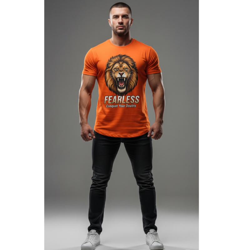 Men’s Black “Fearless – Conquer Your Doubts” T-Shirt, 100% Cotton, Bold Motivational Print