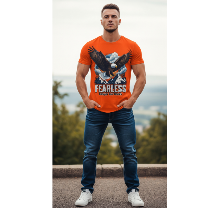 Men’s Orange “Soaring Eagle” Graphic T-Shirt | Bold Central Print | 100% Cotton