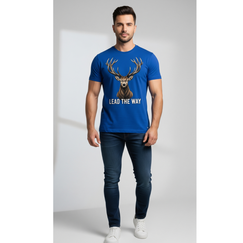 Men’s Royal Blue “Lead the Way” Stag Graphic, Half Sleeves, Round Neck T-Shirt, 100% Cotton, 250 GSM