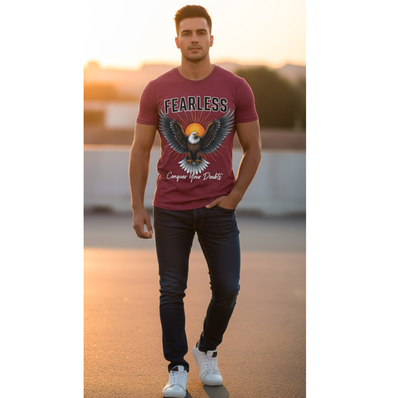 Men’s Black “Fearless – Conquer Your Doubts” T-Shirt, 100% Cotton, Bold Motivational Print