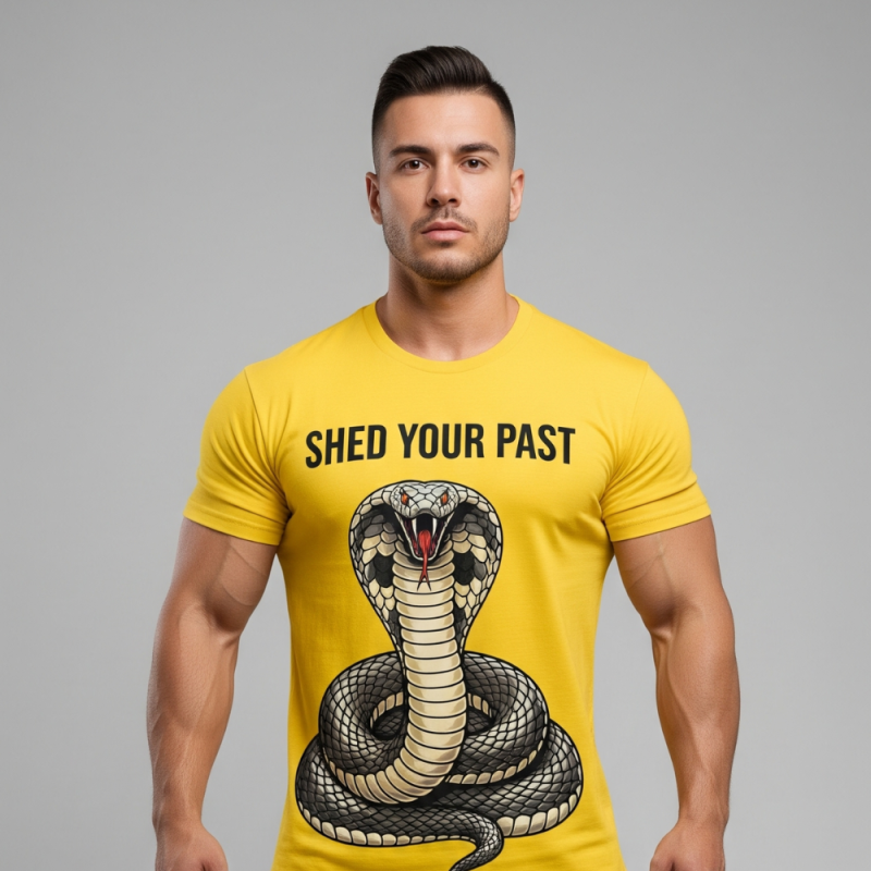 Command attention with this Men’s Yellow T-Shirt featuring a fierce cobra graphic in the centre.