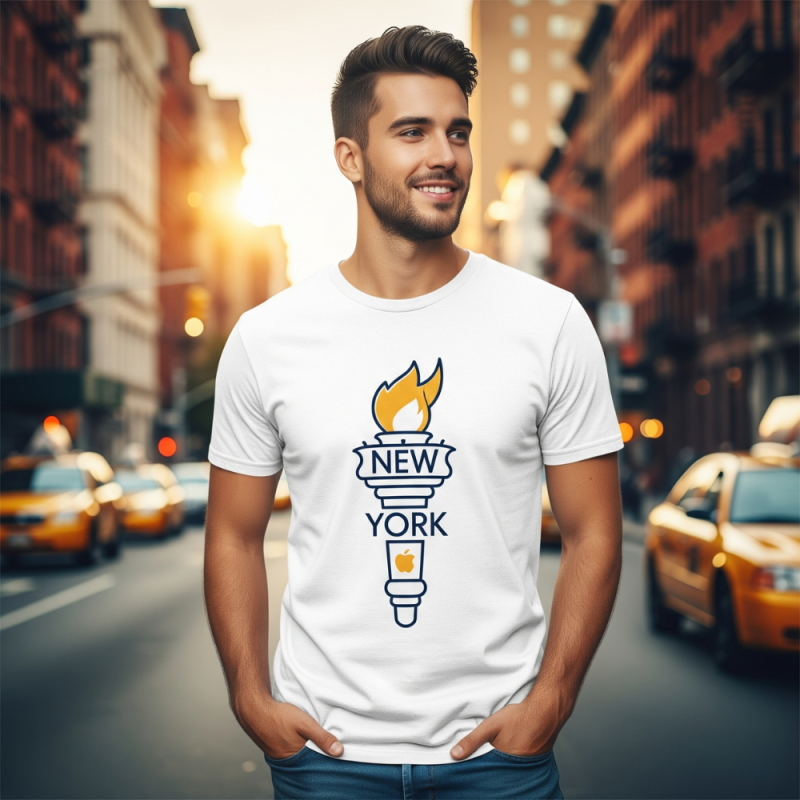 Half Sleeve Men’s White T-Shirt – New York Theme, 250 GSM Cotton
