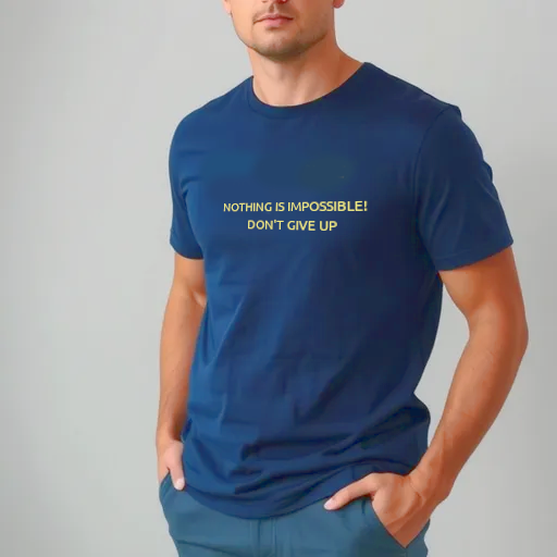 Crafted with premium cotton, this T-shirt promises unparalleled comfort and breathability. The soft fabric gently embraces your skin, making it ideal for all-day wear. The vibrant peacock blue color adds a splash of contemporary style, ensuring you stand out from the crowd. Let your attire speak volumes about your unwavering spirit and determination. - Empowering Message: The bold "Nothing Is Impossible - Don't Give Up" slogan is a daily reminder to push boundaries and defy odds. - Classic Fit: Tailored to perfection, this T-shirt offers a relaxed yet flattering fit that complements all body types. - Durable Design: Reinforced stitching ensures longevity, allowing you to make a powerful statement time and again. - Versatile Style: Perfect for casual outings, sports activities, or just lounging around, this T-shirt is a versatile addition to your wardrobe. Transform your everyday look with a touch of inspiration and style. Because with this T-shirt, nothing is impossible! |