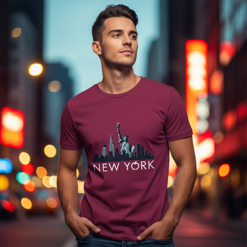 NYC Style – Red Wine Premium 250 GSM Cotton T-Shirt for Men