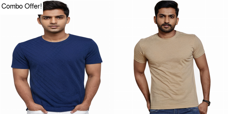 Step up your style game with our Plain Textured Half Sleeves Cotton T-Shirt for Men in a classic combination of Navy Blue and Beige. This isn't just a t-shirt; it's a statement of comfort and elegance, designed to keep you looking sharp and feeling fabulous all day long. The dual-tone Navy Blue and Beige design makes this t-shirt incredibly versatile. Pair it with your favorite jeans for a laid-back look, or dress it up with chinos for a smart-casual vibe. The minimalist design ensures it blends seamlessly with any style, while the high-quality fabric resists fading, keeping you looking fresh wash after wash. - Premium Quality: Made from high-grade cotton for maximum comfort. - Stylish Design: Classic Navy Blue + Beige combination with a textured finish. - Versatile Use: Perfect for casual outings, relaxing at home, or even a night out. - Durable: Built to withstand the test of time and repeated washes. |
