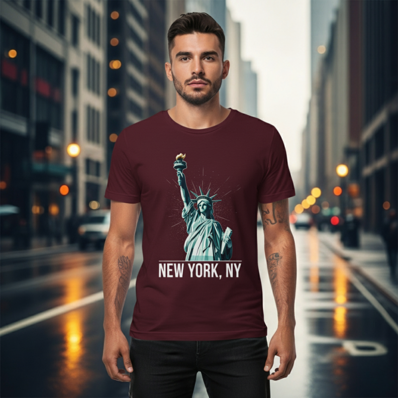NYC Style – Red Wine Premium 250 GSM Cotton T-Shirt for Men