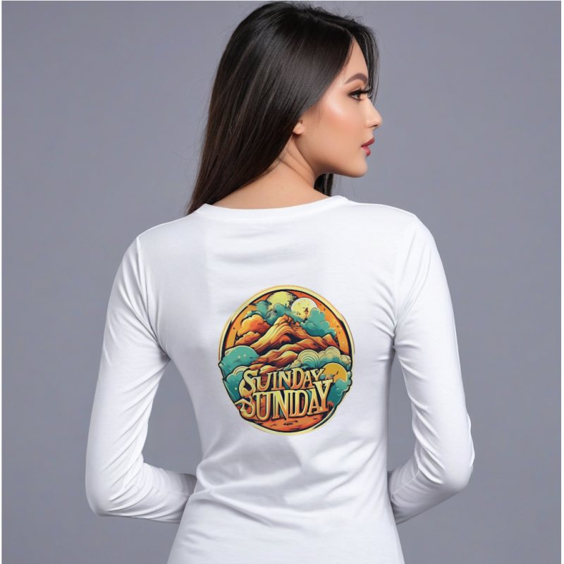 Sunday dayout white cotton t-shirt for women, Full Sleeves