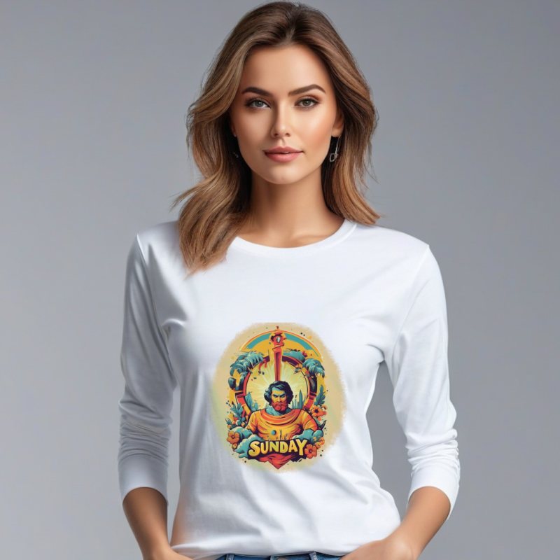 Sunday dayout white cotton t-shirt for women, Full Sleeves