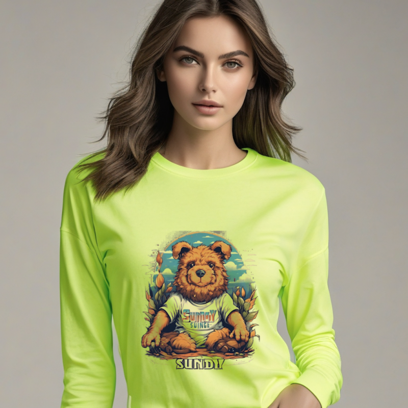 Neon Green Full Sleeve Cotton T-Shirt – Sunday Print, 250 GSM