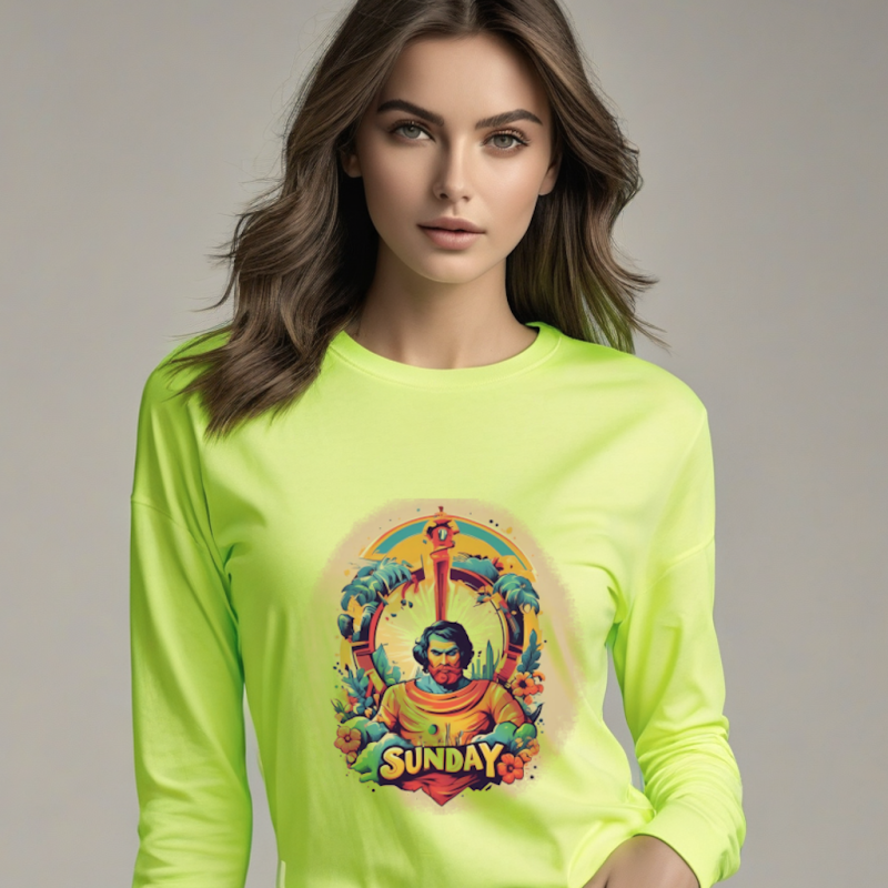 Sunday Quote T-Shirt – Neon Green, Full Sleeves, 250 GSM Cotton