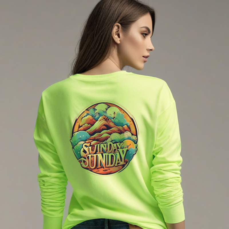Sunday Quote T-Shirt – Neon Green, Full Sleeves, 250 GSM Cotton