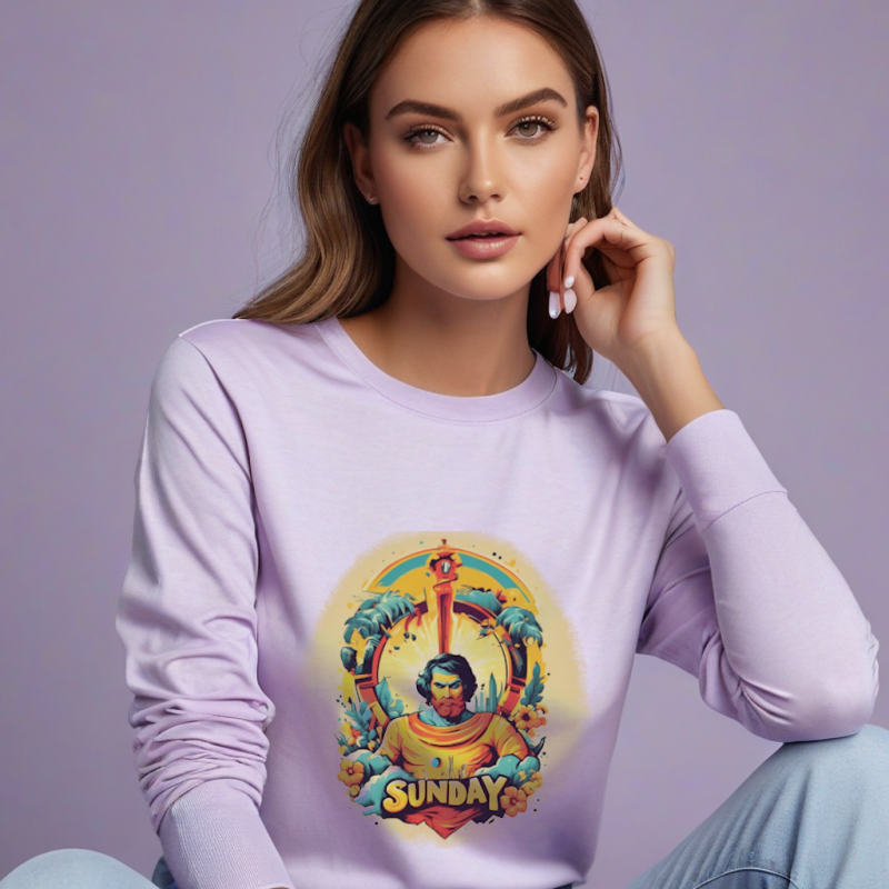 Heavy Cotton Feel – Lavender Full Sleeve Tee with Sunday Design