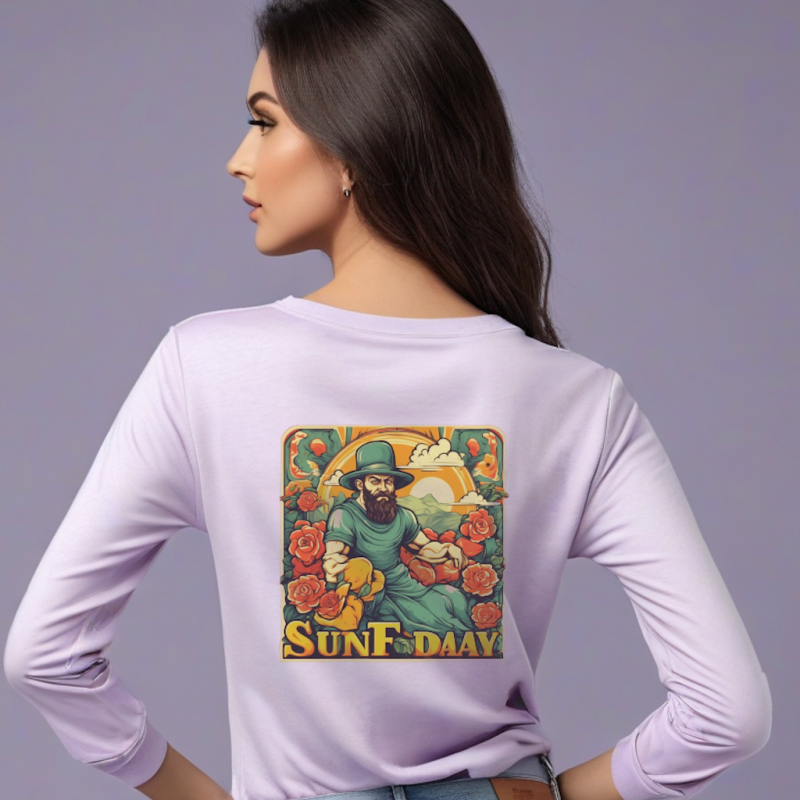 Heavy Cotton Feel – Lavender Full Sleeve Tee with Sunday Design