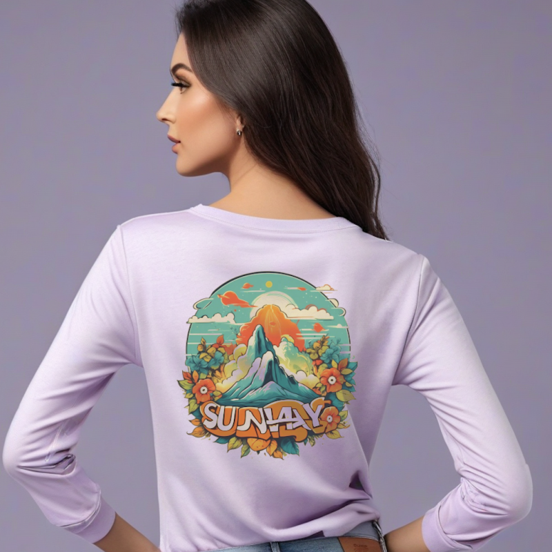 Heavy Cotton Feel – Lavender Full Sleeve Tee with Sunday Design