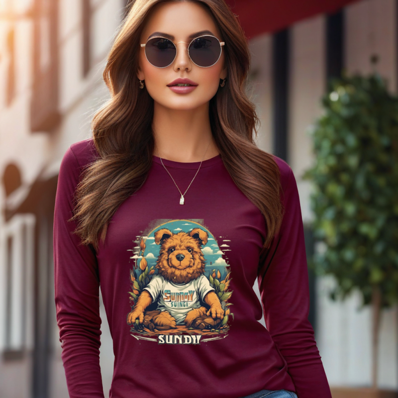 Sunday cool bear black cotton Full Sleeves t-shirt for women
