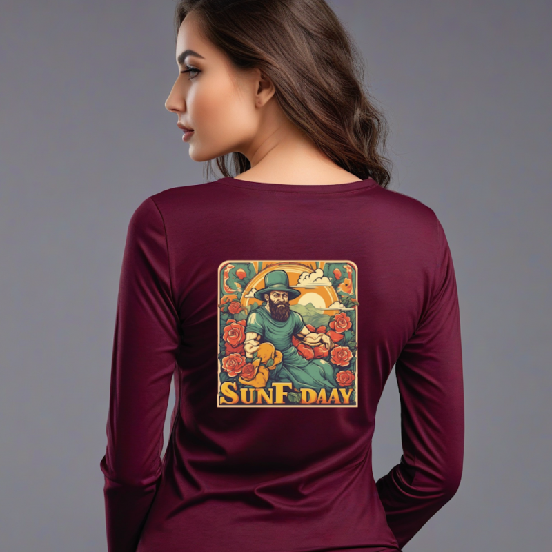 250 GSM Cotton Tee – Wine Color, Sunday Pattern, Full Sleeves