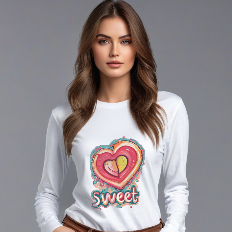 Sweet Text Women’s Tee – Black Cotton, Long Sleeves
