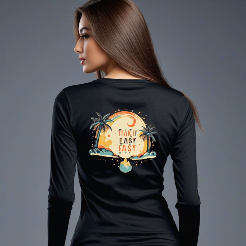 Full Sleeve Women’s T-Shirt – Take It Easy Message, Soft Cotton Feel (Black)