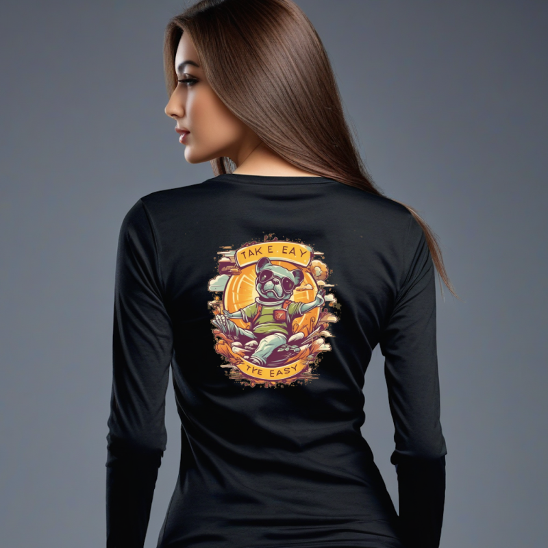 Full Sleeve Women’s T-Shirt – Take It Easy Message, Soft Cotton Feel (Black)
