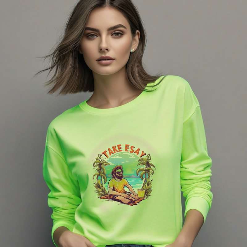 Take It Easy Graphic T-Shirt – Neon Green Cotton Long Sleeve for Her
